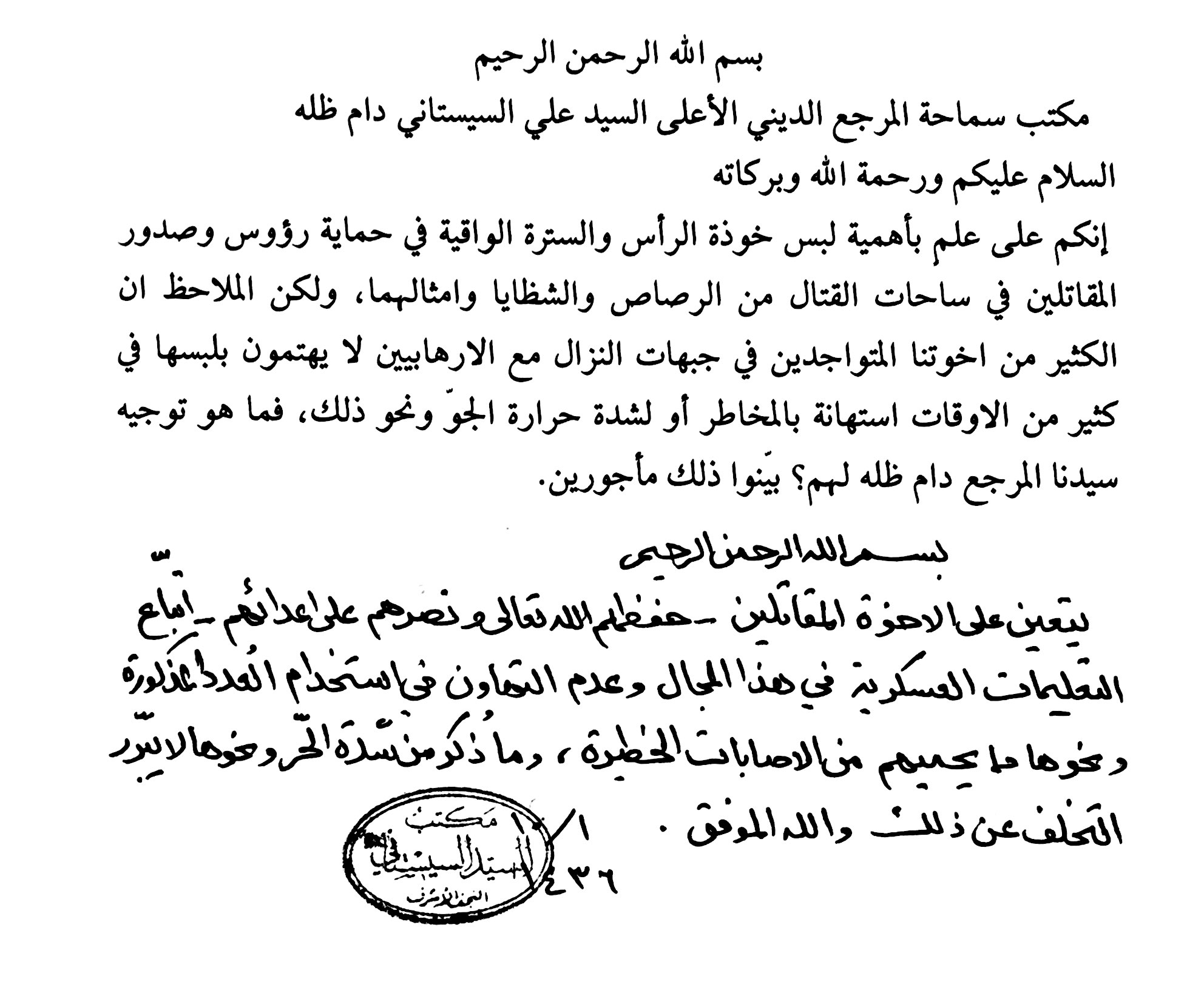 استفتاء حول تعيّن استخدام الخوذة والسترة الواقية للمقاتلين في جبهات القتال
